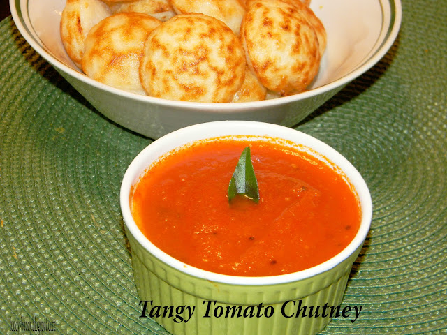 Tomatoes! They are sweet, juicy and delicious. Everyone knows they are good for health, right? One of the most well known tomato eating benefit is lycopene, a vital antioxidant. This healthy low calorie chutney has a sweet-tart flavor with little spice taste. I got this recipe from my mother-in-law. Tangy tomato chutney is a good accompaniment for paniyaram, idly and dosa.