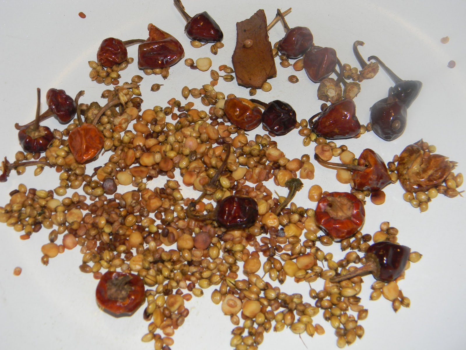 - In a pan, add oil and dry roast the ” To Grind” ingredients until it turns aromatic and golden brown color.