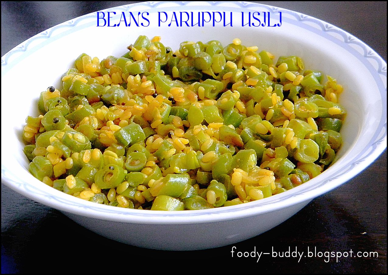Beans Paruppu Usili is a traditional South Indian dish which is a combination of green beans and yellow moong dal. Instead of making regular vegetable stir fry, add some dal to it, it not only enhances the taste but also good for health. This delicious and healthy dry curry goes well with any variety rice or puli kulambhu. You can use different vegetables like cluster beans, carrot, cabbage etc just by following the same recipe.