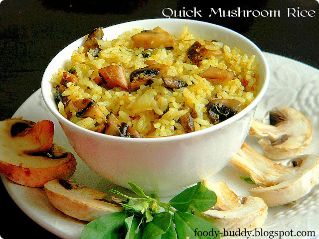 Those who love mushroom, will surely love this rice…This quick mushroom rice is very flavorful, very easy to make, with very less ingredients and no tempering’s and it can be made in matter of 5 minutes. It tastes absolutely yummy if you eat with rice crackers or potato chips. Good to pack for lunch box and your kids will love this.