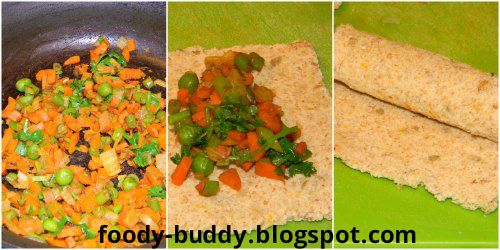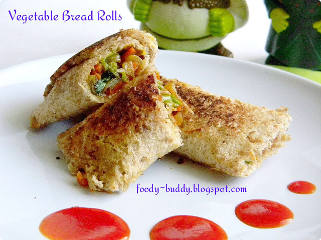 Vegetable Bread Roll Recipe is a delicious and healthy evening snack to eat with a cup of tea. They are easy and quick to make recipe with healthy ingredients. You can use whole wheat bread or white bread to make this dish. I have given recipe with step by step pictures. Have this veggie bread rolls with hot tomato chilli ketchup. Also it is great liking recipe both for kids and adult. You can also pack this vegetable bread roll for kids lunch box.