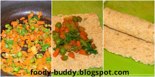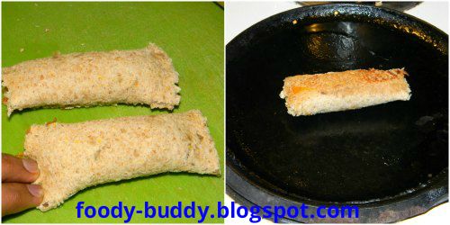 • Add the stuffing in middle of the bread and then roll it and finally seal the end of the bread with few drops of bread.