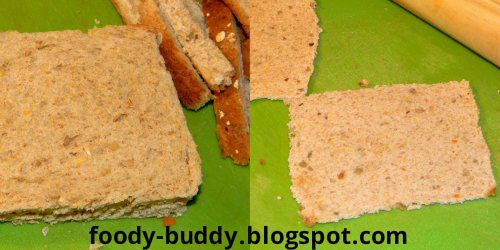 • Cut the brown crust of the bread, roll it slightly with a rolling pin.