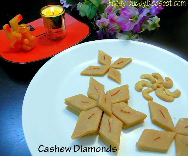 Kaju katli or cashew diamond is a delicious Indian dessert. KAJU means cashews and BARFI is a Indian sweet, usually in the form of lozenge.This barfi is made with cashews, sugar and milk. This sweet is relished and gifted extensively during festival occasions in India. Recipe is very easy and simple to make in very less time. Give it a try and enjoy….